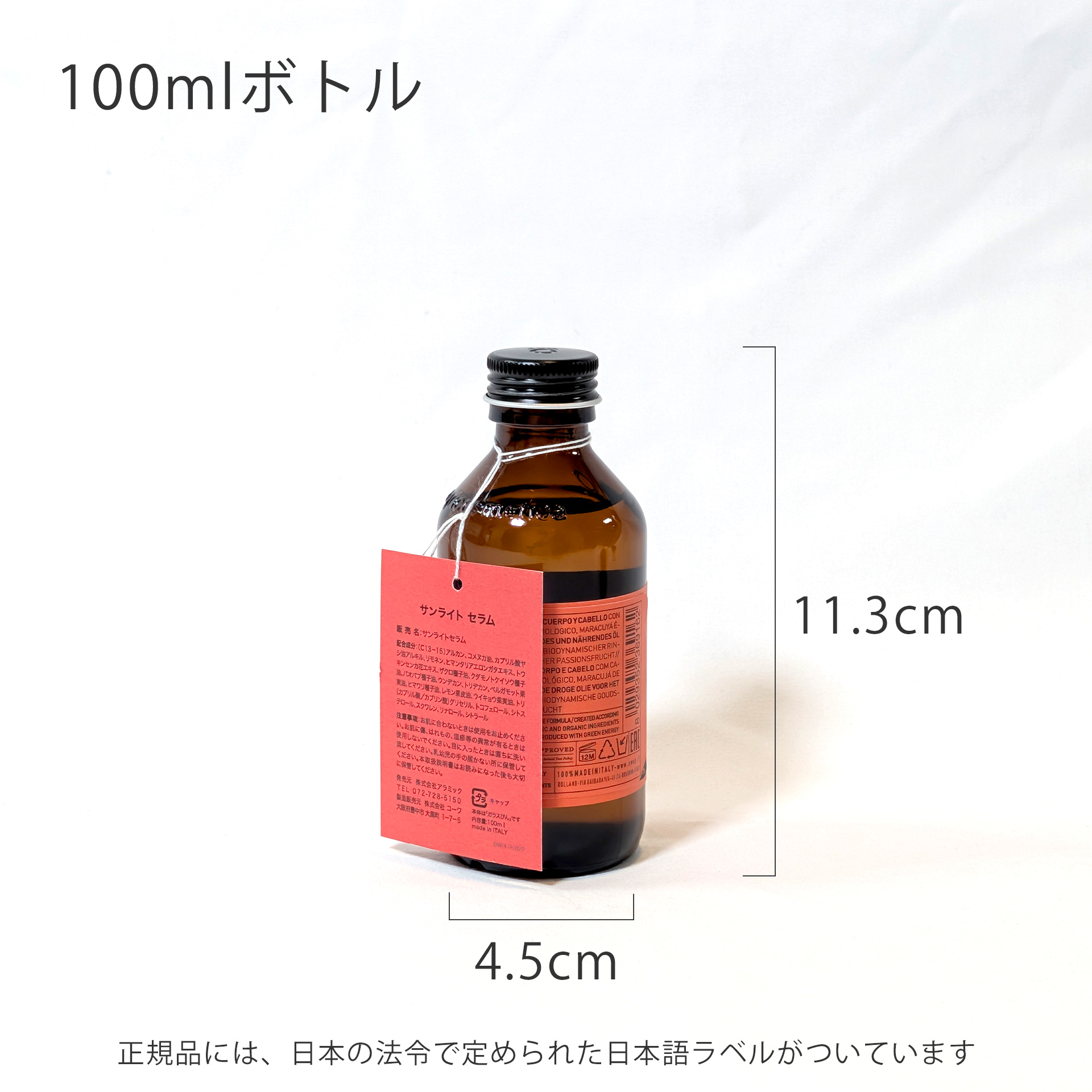 内容量:100ml ボトルサイズ:4.5×4.5×11.3
